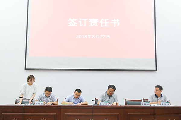 会上,石道金、潘国忠与分管院领导签订了2018年党风廉政建设责任书。石道金与职能部门、学院(部)代表签订了2018年校园综合治理责任书。分管院领导与职能部门、学院(部、中心)代表签订了2018年党风廉政建设责书。