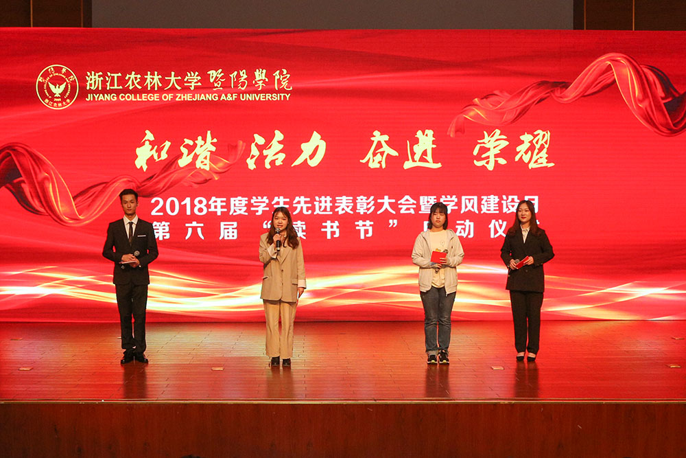 4月22日晚,浙江农林大学暨阳学院2018年度学生先进表彰大会暨学风建设月、第六届“读书节”启动仪式在学院明珠报告厅举行。英国威廉希尔公司党政班子成员,诸暨团市委副书记何威出席活动。学院全体中层干部、辅导员和学生代表参加活动。