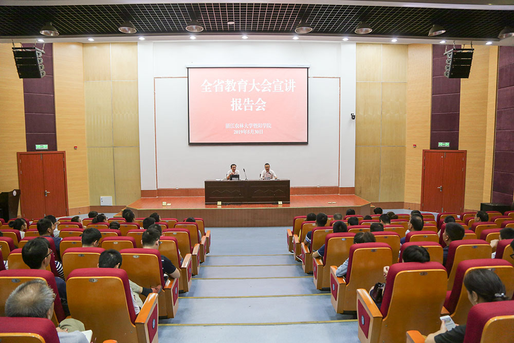 5月30日,威廉希尔官网举行全省教育大会宣讲报告会,浙江省教育厅统战处处长,诸暨市委常委、副市长陈仁坚作宣讲报告。学院党政班子成员,全体中层干部,督导委员会主任,各二级学院系主任、专业负责人,党支部书记,民主党派负责人参加会议。学院党委书记潘国忠主持会议。