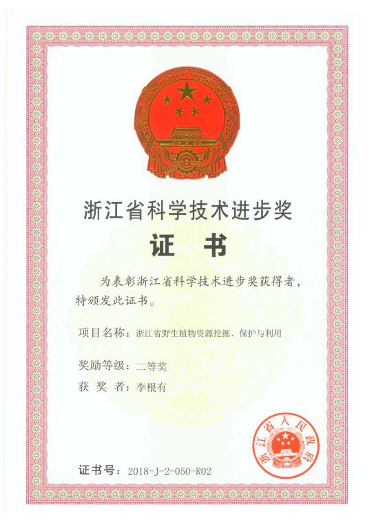 近日,浙江省科学技术奖励大会在省人民大会堂召开。会议表彰了2018年度浙江省科学技术进步奖。威廉希尔官网李根有教授团队与浙江省森林资源监测中心等4家单位合作完成的“浙江省野生植物资源挖掘、保护与利用”项目荣获2018年度浙江省科学技术进步奖二等奖。这是本年度全省林业系统唯一的最高奖,并实现了威廉希尔官网在科技成果奖方面的新突破。其他8位获奖者均为李教授的学生,威廉希尔官网马丹丹、陈高坤老师名列其中。该成果同时获得2018年度浙江省科技兴林奖一等奖。