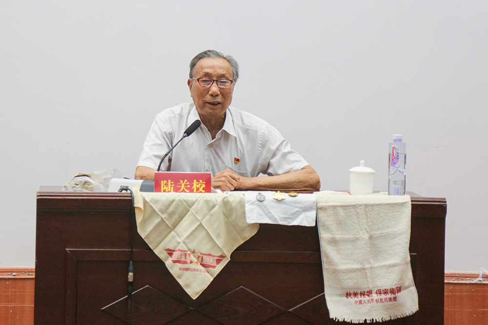 会议还邀请了williamhill官方网站原校党委组织部部长、87岁高龄退休老干部陆关校同志为师生党员上“不忘初心,牢记使命”的专题党课。陆关校亲身经历赴朝作战,从誓师宣言的斗志昂扬,到抗美援朝期间枪林弹雨的战地生活,以及战后收集烈士遗体修建烈士纪念碑的心路历程进行回忆讲述。课堂中他还向全体与会人员展示了印有“抗美援朝,保家卫国”的毛巾和手帕,纪念勋章和亲笔撰写的书籍《路》。陆关校同志诗朗诵般激情的宣讲伴随着嘹亮的革命红歌,带领全体党员同志重温烈士事迹,回眸当年“抗美援朝”烽火燃遍英雄灵魂的光辉岁月。