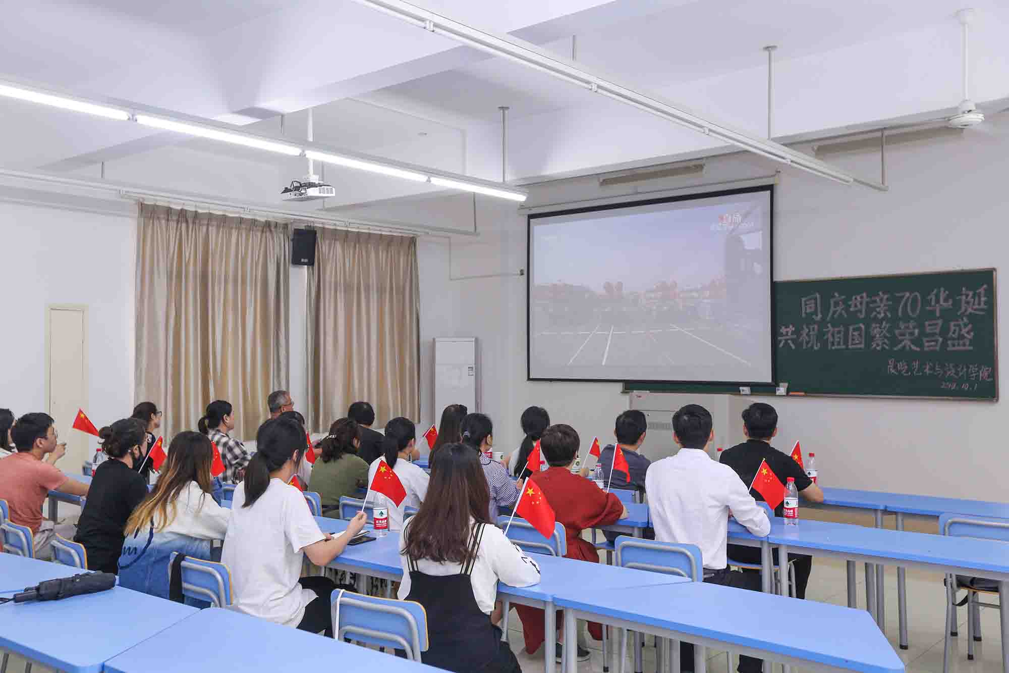 集体观看庆祝中华人民共和国成立70周年大会的活动激发了广大师生报效祖国、报答母校的爱国爱校热情,增强了民族自信心和自豪感,大家纷纷表示,自身经受了一次深刻而生动的爱国主义和集体主义教育。