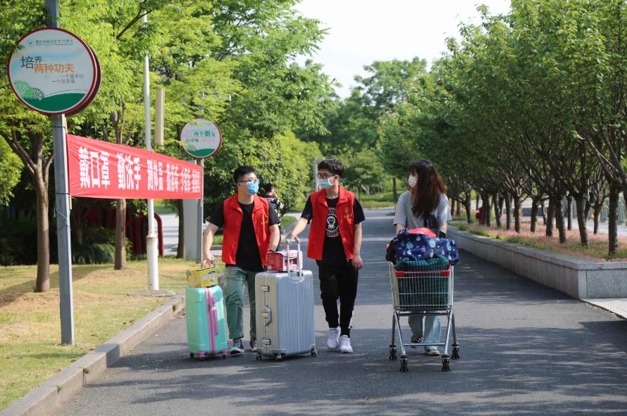 据悉,根据要求,学生进校前需进行行李消毒,体温检测,绍兴健康码和入校通行码检查;学院还专门安排了火车站,汽车站返校专车,在校内安排行李运输车和小推车方便学生轻松到达宿舍;校园内公共场所进行了通风、消毒,食堂也设置了排队间隔距离限制,科学实施就餐管理,确保用餐安全。