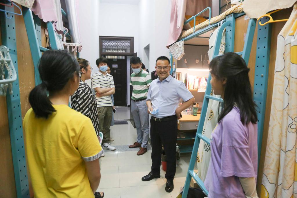 近日,学院领导深入学生社区走访看望返校学生,了解学生返校复课后的学习和生活情况。