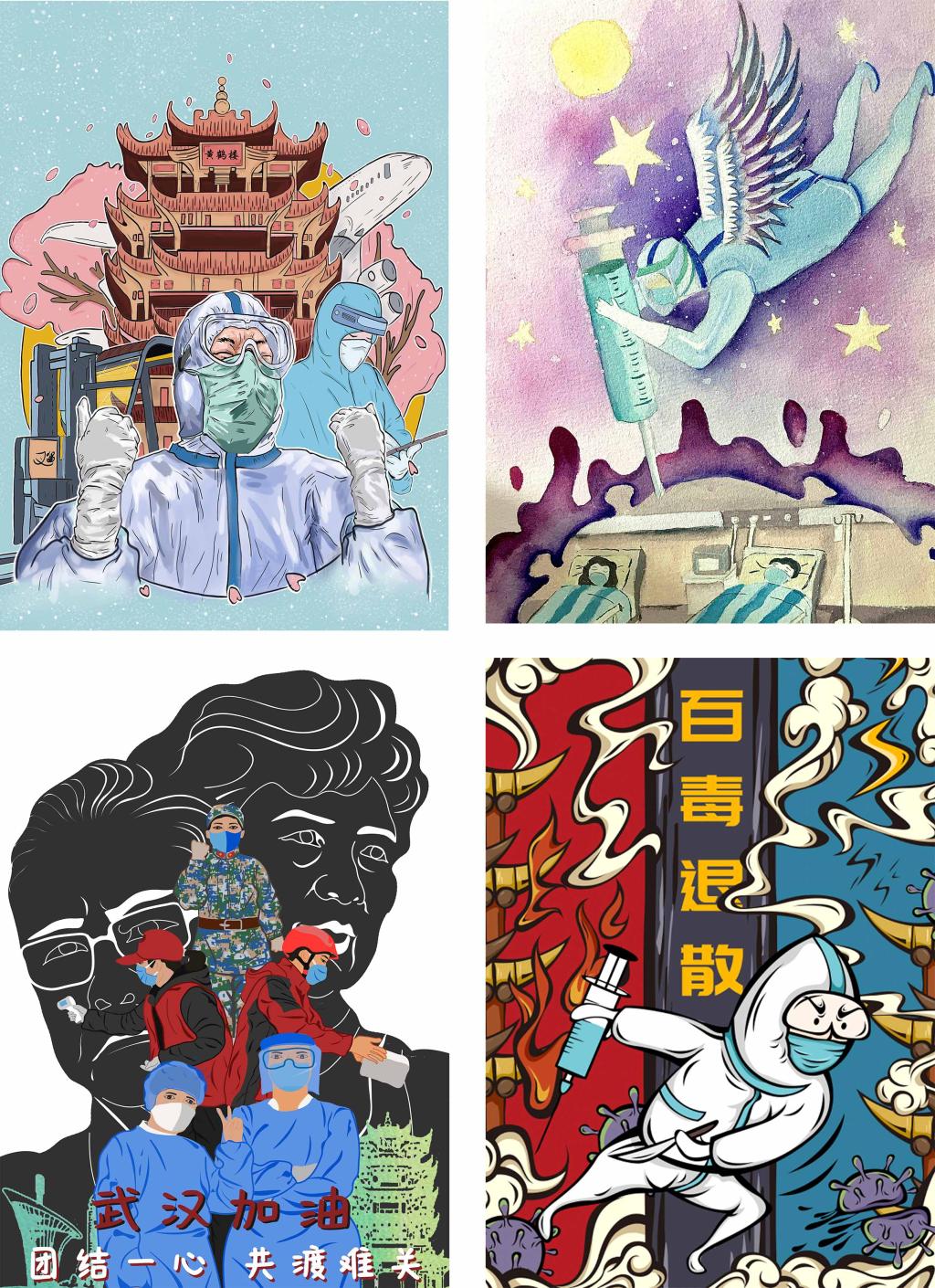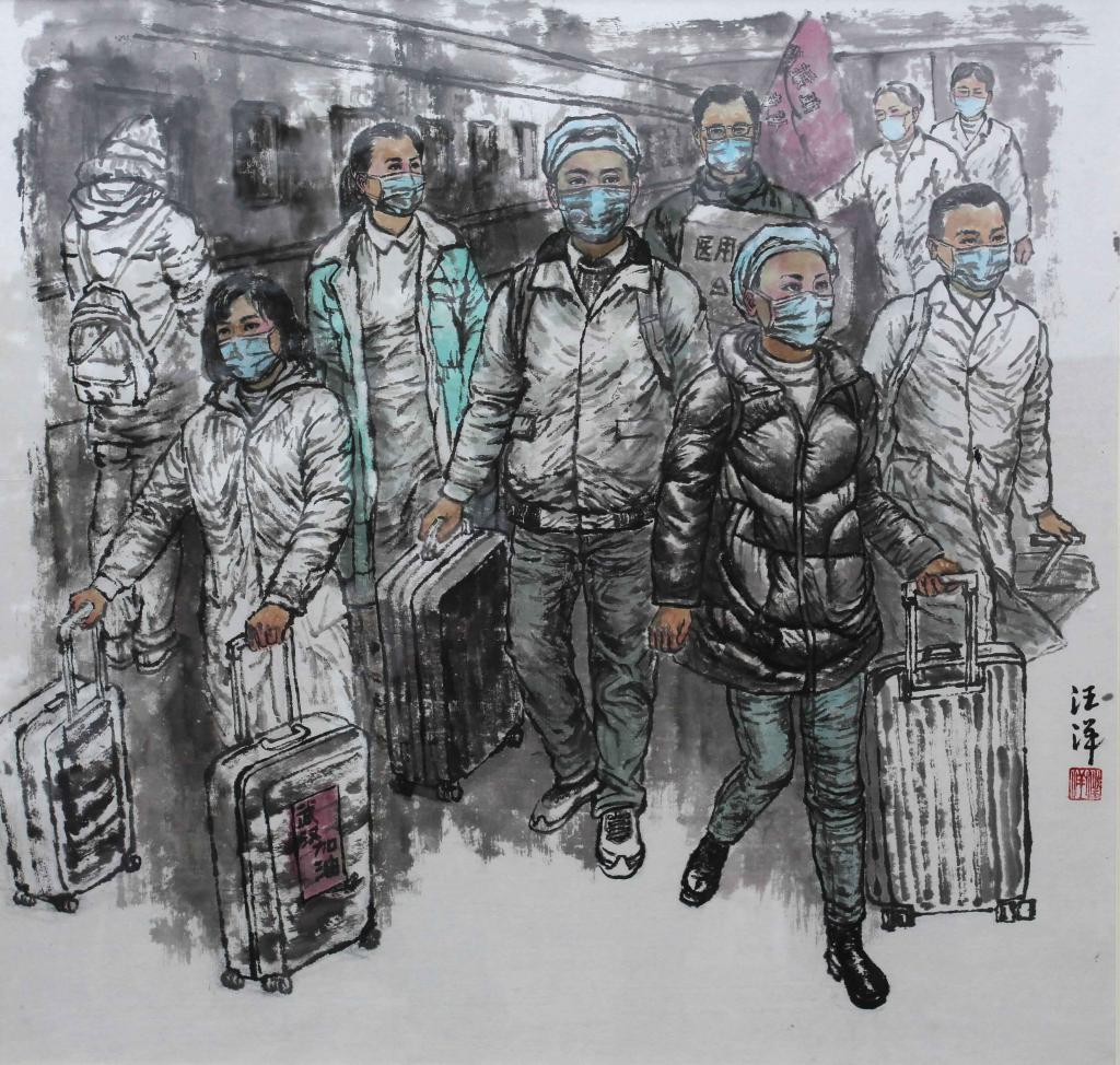 “虽没有办法在一线战斗,但我选择以笔为枪,用自己的专业表达抗疫的热情!”晨晓艺术与设计学院汪洋教授创作的中国画《逆行者》、《征途》用一支行云流水的画笔,构绘出抗疫一线的最美逆行者;用朴素的色彩闪耀出中华民族的团结一致抗击疫情的决心。