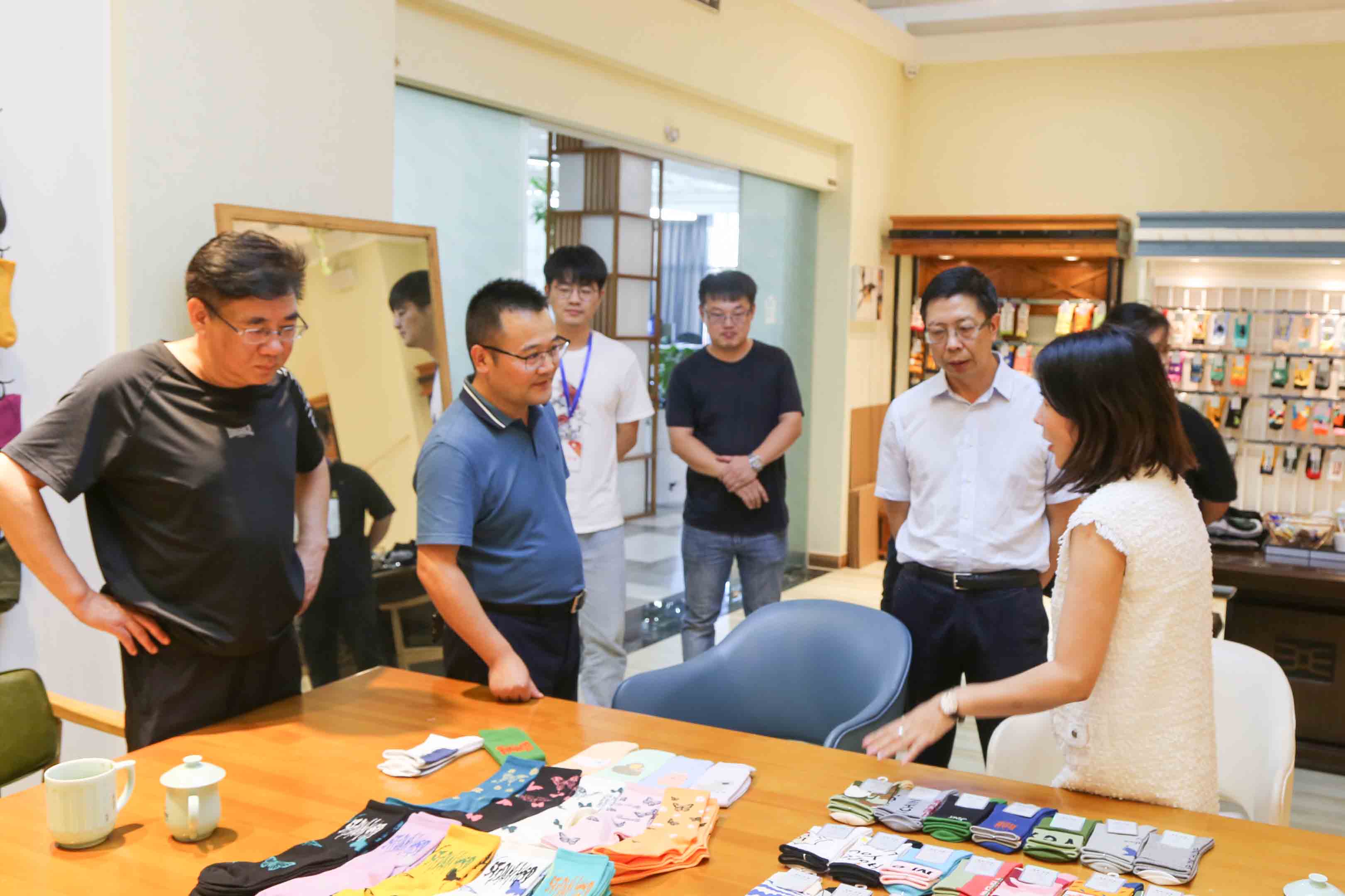 当天下午,院长徐光辉、党委书记潘国忠、副院长袁志刚一行到浙江凯诗利科技有限公司、诸暨天新针纺有限公司、诸暨幸承针织厂和大唐袜艺学院产学研基地看望实习实训学生,并亲切座谈交流。