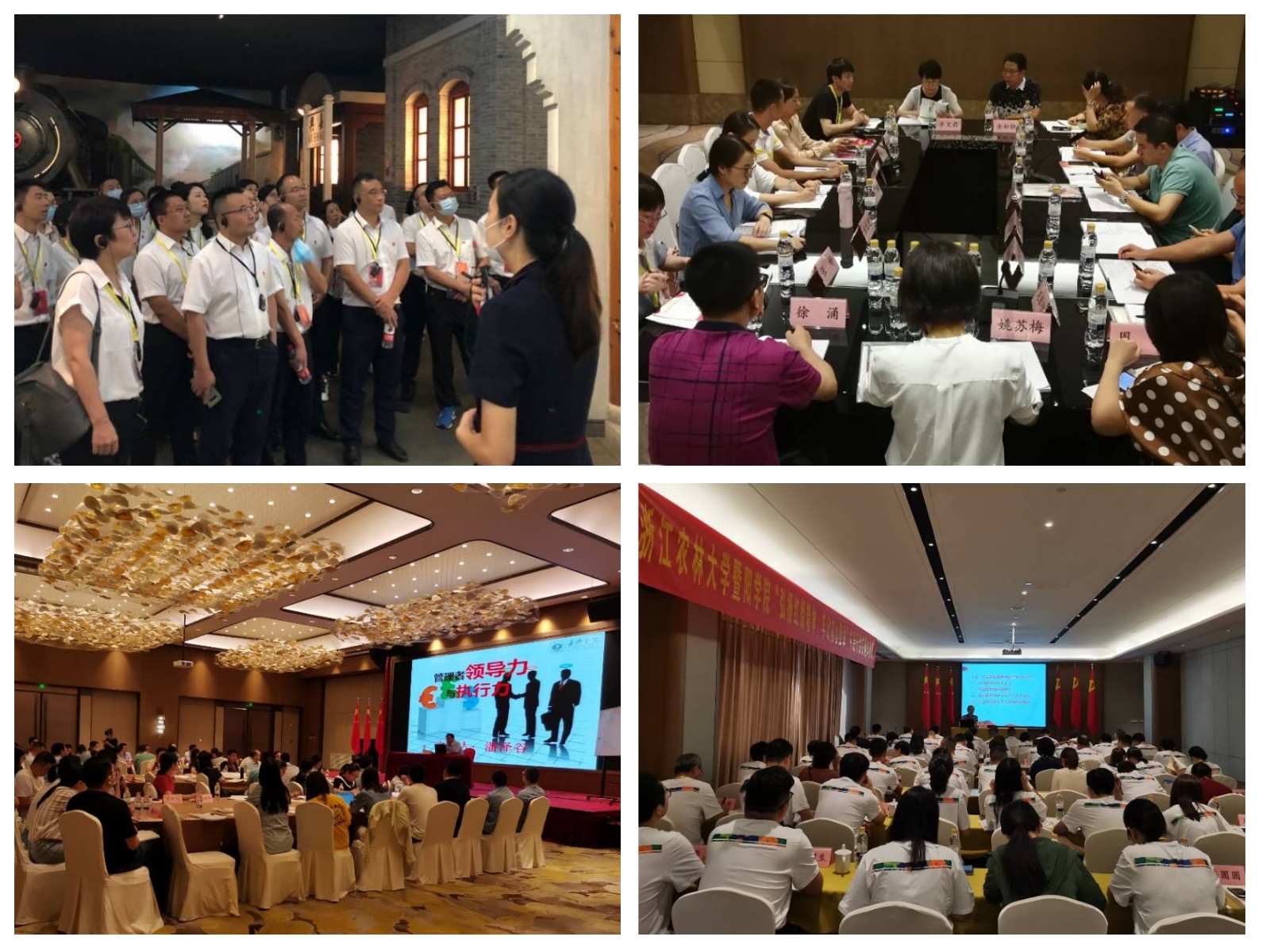 本次培训形式丰富,分理论教学、现场教学、影视教学以及分班研讨、汇报交流,培训内容涉及“红船精神与不忘初心”“党的十九届四中全会精神解读”“民法典与依法治校”“卓越团队建设”“管理者领导力与执行力”等方面。培训期间,全体学员遵章守纪、严谨认真,热情饱满、主动思考。在分班研讨环节,学员们结合学院实际,畅所欲言,从个人谈到集体,从小我谈到大我,政治站位高,大局意识强,思想认识深,为学院发展出谋划策,对学院未来充满信心。在现场教学环节,学员们重访革命旧踪,瞻仰南湖红船,回顾了中国革命史及中国共产党建党史,学院党委书记潘国忠带领全体党员重温了入党誓词。