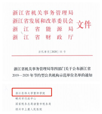 威廉希尔官网喜获“浙江省2019-2020年节约型公共机构示范单位”荣誉称号