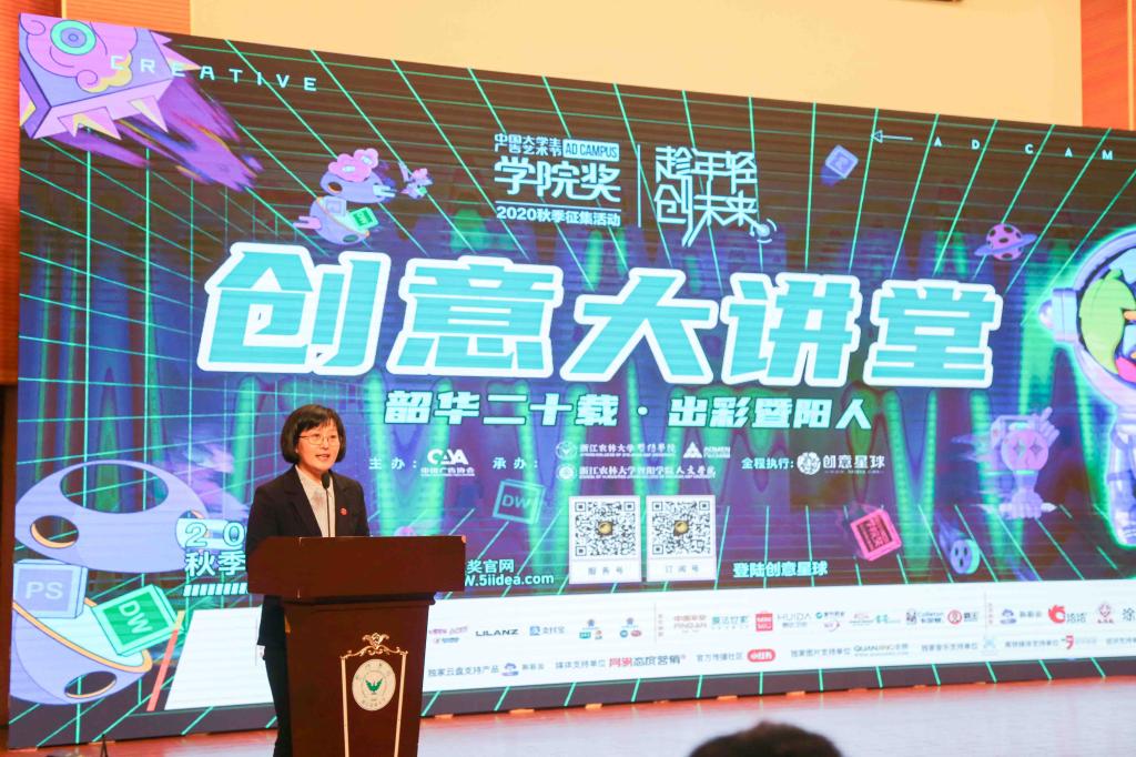李叔君向到场的嘉宾和师生们表示诚挚的欢迎,介绍了学院办学20年的发展历程,并寄语广告学专业学子们殷切期待。她指出,威廉希尔官网广告学专业在浙江省是较早成立的专业,发展20年来拥有了一支德才兼备、专业素质高的专兼职师资队伍,秉持着“行业对接、以赛促教”的人才培养模式,培养的广告学子在各种赛事中获得各类奖项1780余项,为社会输送了一批又一批优秀的广告人才。她表示,学院将以本次活动为契机,加强与行业企业的互动,与各大院校的交流,加快学院广告学专业产学研一体化建设,共谋学科专业规划发展,共同培养顺应时代需求的高水平应用型广告创意人才。她期望,同学们珍惜这次机会,培养自我善于思考,勇于创新,敢于挑战的意识和能力;期望同学们把学院奖当作一个战场,真枪实战地面对企业需求进行创作和PK,在大广节学院奖上取得佳绩;期望同学们学以致用,用以促学,更好地掌握专业知识和技能,锤炼过硬本领,在时代舞台施展才华、担当大任。