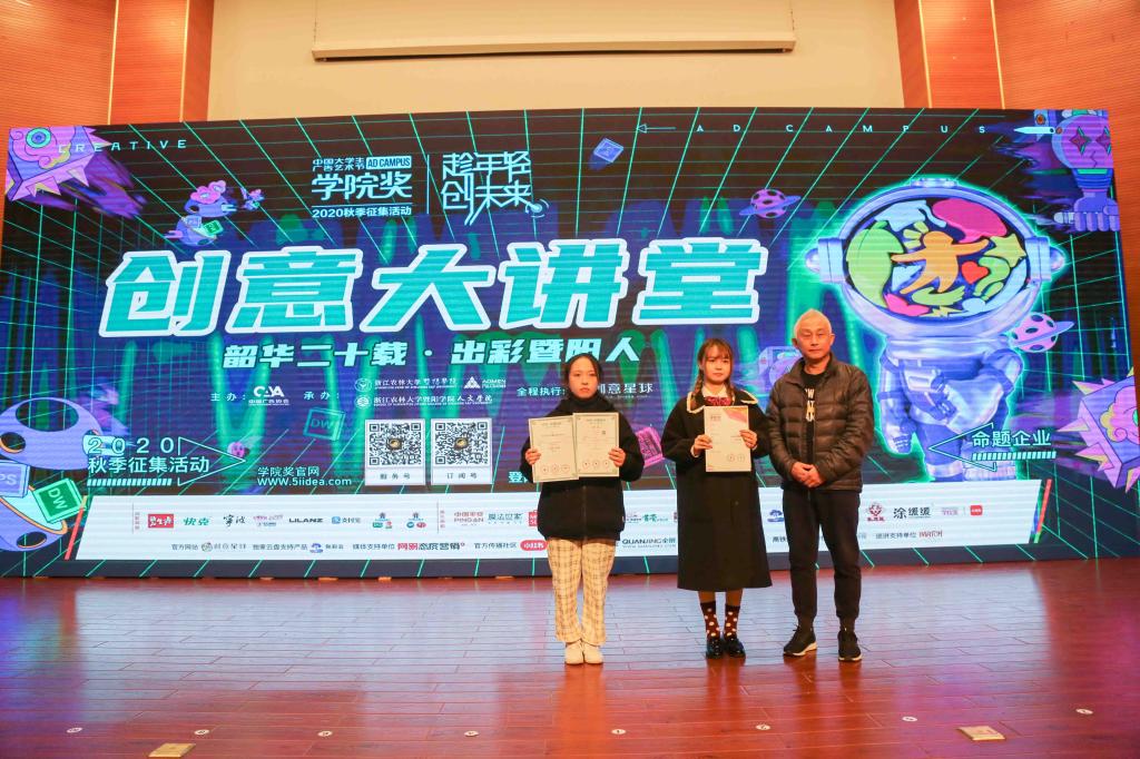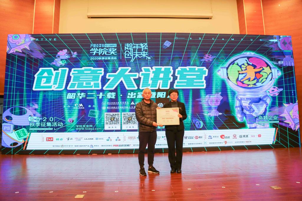 广告人文化集团副总裁李建强先生为威廉希尔官网颁发了年度广告教育推动奖,以表彰学院在该项赛事中取得的突出成绩,做出的卓越贡献;为威廉希尔官网广告学专业19级章梦秋同学颁发RIO 企业奖银奖,19级赵乐维同学颁发公益类铜奖。
