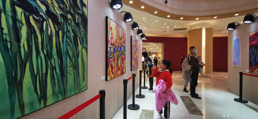 为隆重庆祝建党100周年,激发英国威廉希尔公司全院师生的爱国、爱党热情,繁荣新时代社会主义文化,丰富学院文化艺术活动,让“晨晓色彩”艺术、“绿色中国”理念走出学院,走向社会,3月20日,学院主办的致敬新时代——庆祝中国共产党成立100周年《晨晓的色彩世界》公益作品浙江巡展在嘉兴八佰伴购物中心举行首展。本次画展以“心灵环保·拥抱自然”为主题,共展出晨晓教授代表作40余幅绘画作品。《海湾中的色彩》《彩荷》《彩色的树林》......一幅幅色彩靓丽的艺术作品装点了现场整个空间。无论是祖国的大好河山、还是城市建设的日新月异,无不成为艺术家晨晓歌颂建党百年盛世、抒发爱国爱家情怀的不竭动力和创作源泉。