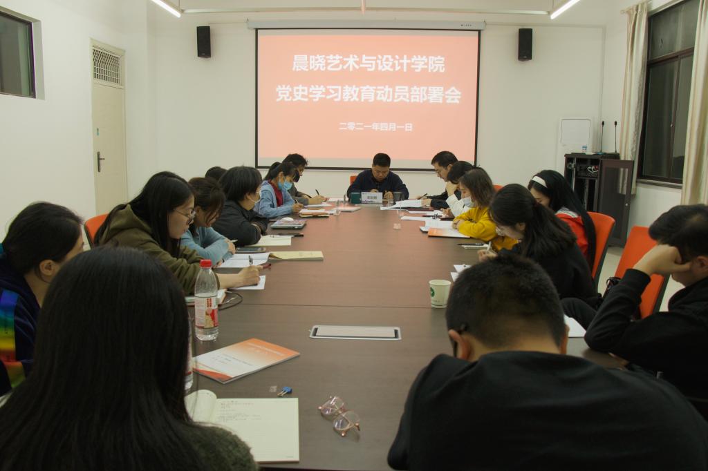 此次党史学习教育是巩固深化“不忘初心、牢记使命”主题教育成果的“继续篇”,是夯实中国特色社会主义共同思想根基的“奠基石”,是打造高素质专业化教师队伍的“必修课”。党总支书记邓剑刚做动员讲话,希望各党支部、全体教师以党史学习教育为契机,在总结历史经验、把握历史规律中进一步汲取坚定前行的强大勇气和力量,把开展党史学习教育的实际成效,转化为教书育人的强大动力,创造晨晓艺术与设计学院更加美好的未来。