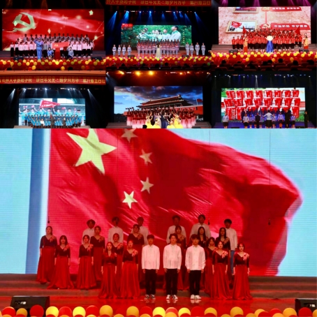 来自各个二级学院的6支代表队上台演唱。参赛师生神采飞扬、慷慨激昂,通过诗歌朗诵、小品、情景剧、舞蹈等多种形式进行精彩演绎,在歌声中焕发出新时代青年的精神面貌。