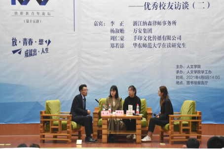 4月8日,学院在图书馆报告厅举行出彩新青年论坛第十五讲,邀请三位优秀毕业生作客论坛。校友们幽默风趣、深入浅出的讲话不仅给同学们留下了深刻的印象,帮助同学们对专业学习有了更深刻的理解,更激励同学们向优秀校友看齐,向榜样学习,坚定信念,努力奋斗,争做出彩新青年。