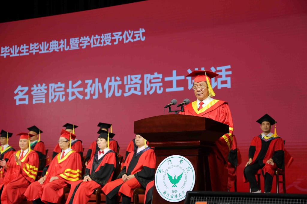 “四年的大学时光已经行至尾声,你们即将带着母校的祝福,奔赴下一个征程。”孙优贤院士向2021届顺利完成学业,开启人生新的征程的毕业生表示热烈祝贺,并对全体毕业生提出三点殷切希望:一是关于理想。无论未来步入社会职场,还是继续求学,都希望同学们可以把个人梦想汇入时代洪流,勇挑报效祖国的重担,树立远大理想怀家国,成为有使命感的暨阳人。二是关于担当。要紧跟时代潮流,主动担当起影响世界、改变世界、复兴中华的伟大责任,为实现中华民族伟大复兴的中国梦贡献蓬勃的暨阳力量。三是关于坚持。奋斗没有完成时只有进行时,希望大家在攀登时别辜负山,跋涉时别辜负路,要始终相信这世上最好的一种坚持,叫未来可期。
