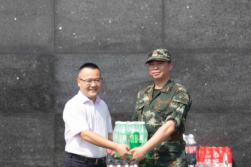学院领导一行先后来到田径场、医务室,详细了解军训工作情况,对参训学生在训练中展现出的昂扬斗志和饱满精神状态予以高度赞扬,对军训教官和医务人员的辛勤付出表示感谢,并送上慰问品。潘国忠勉励参训学生,军训是爱国主义教育的重要环节,也是加强军事理论学习的重要途径。同学们要认真参与训练,提高身体素质,培养吃苦耐劳的精神与毅力,早日适应大学生活,开启人生新篇章。同时,叮嘱全体参训教官和师生要做好防暑降温工作,牢固树立“安全第一”的意识,切实做好军训各项工作。
