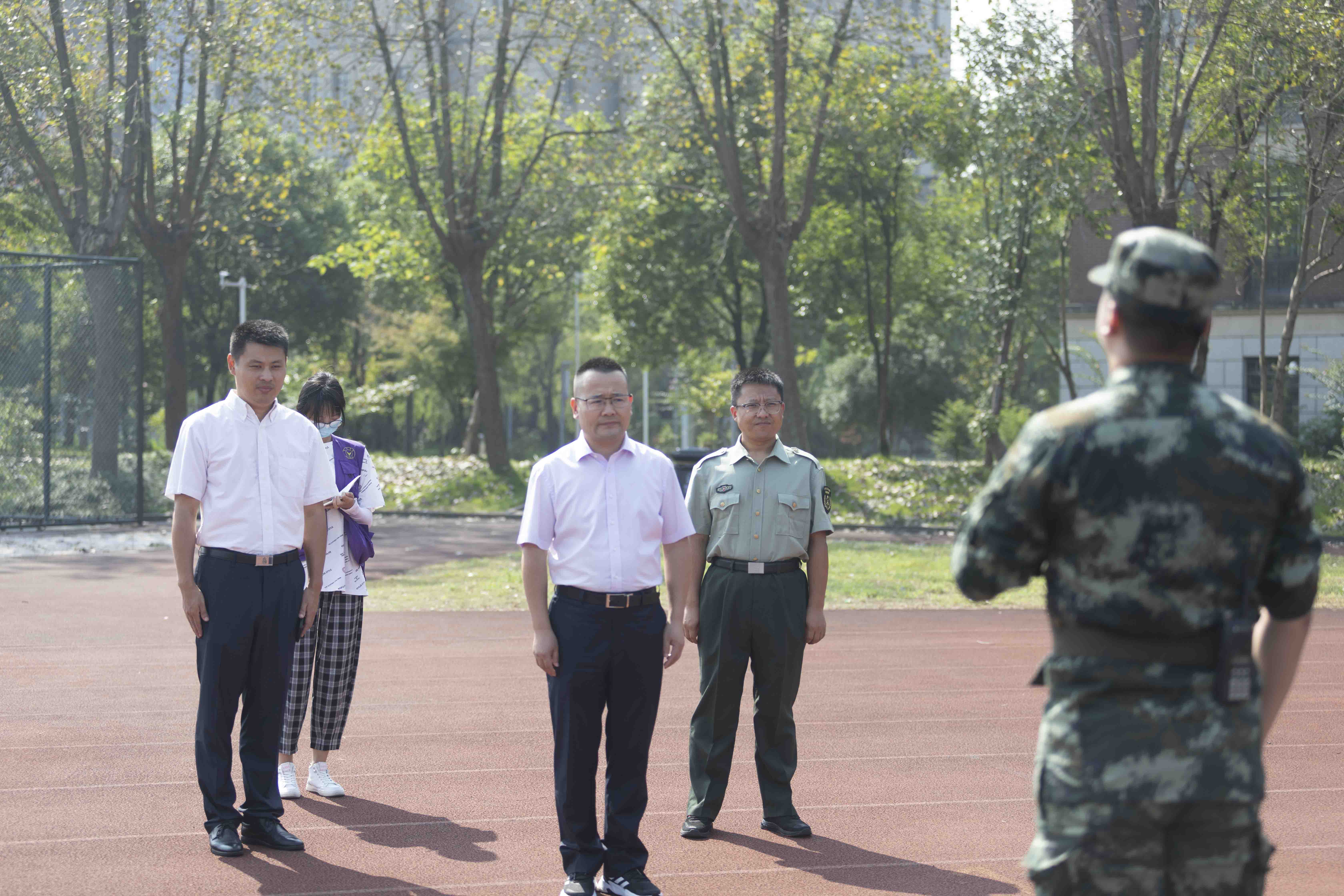 9月19日,临近中秋佳节,党委书记潘国忠,党委副书记高国俊前往2021级新生军训现场,看望慰问参训师生和全体教官,并检查指导军训工作。相关职能部门负责人陪同慰问。