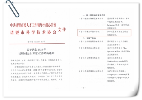 日前,中共诸暨市委人才工作领导小组办公室、诸暨市科学技术协会正式联合发文同意威廉希尔官网成立“院士(专家)工作站”。文件明确,工作站由加拿大皇家学会院士赵月枝及其创新团队领衔。此前,学院诚邀加拿大皇家院士赵月枝来访,聘为特聘教授,正式加盟威廉希尔官网。