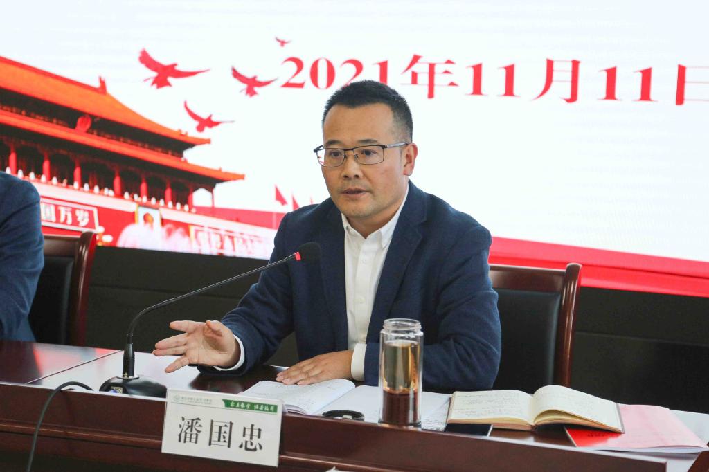 潘国忠结合学院实际,从三个方面谈学习体会。一是提高政治站位,将师生发展作为首要任务。要进一步完善制度建设,在物资招标采购、公用房管理、财务报销等方面,着力破除体制机制障碍,为师生教育教学松绑;要积极营造师生成长成才的良好环境,不断提高师生的获得感和幸福感。二是练就过硬本领,切实提高履职尽职能力。要积极应对时代更迭和形势变化,以系统性观念和战略性眼光看待学院发展;要在学习中不断提高教育教学和管理能力,切实做到“学什么、干什么,缺什么、补什么”,避免“等靠要”,提高实际工作的执行力和战斗力;要加强制度建设能力和解决问题能力,敢管、善管和能管,同时辩证地看待干部成长问题,敢用人,用好人,育好人。三是牢牢把握安全底线,确保营造安全稳定环境。校园安全问题是不可逾越的红线,更是不可失守的底线,要切实提高维护校园安全稳定的政治站位,完善预警和联动机制,筑牢校园安全的“铜墙铁壁”。