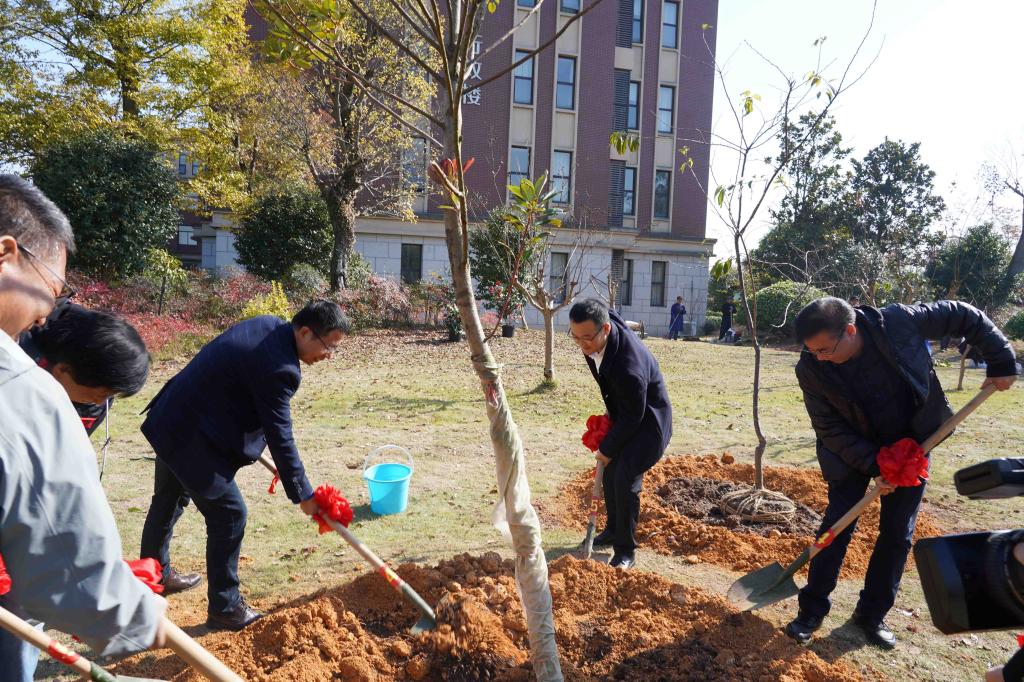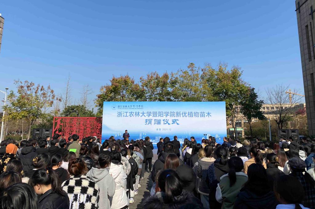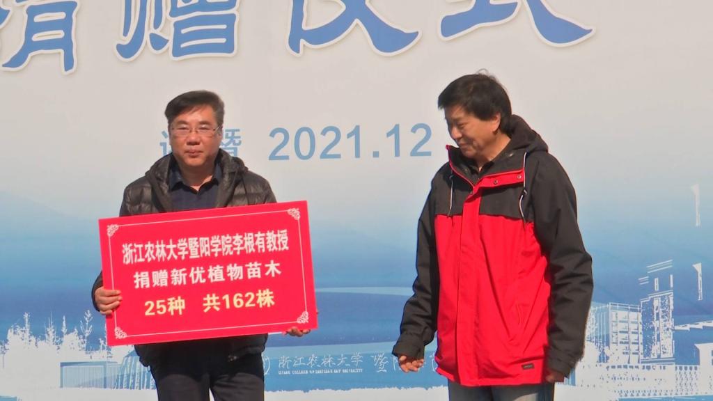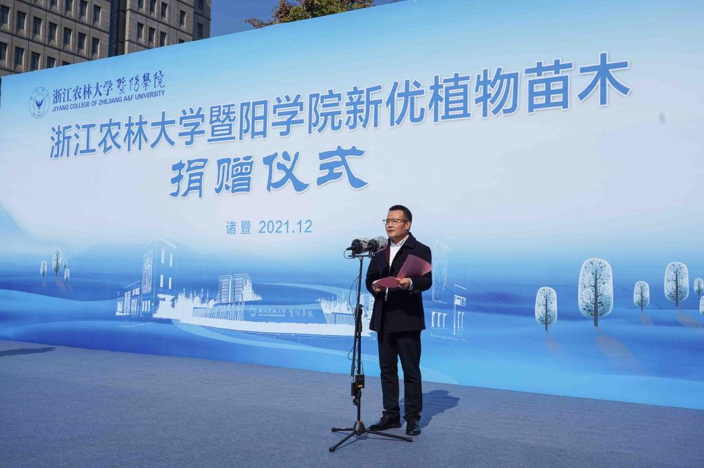 12月3日,学院新优植物苗木捐赠仪式在活动中心小广场举行。学院党委书记潘国忠,副院长金松恒,诸暨市政协副主席、学院副院长袁志刚,诸暨市农业农村局局长张国锄,嘉善县笠歌生态科技有限公司总经理方腾,学院教授李根有出席仪式。仪式由副院长金松恒主持。