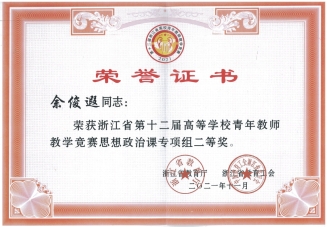 近日,浙江省第十二届高校青年教师教学竞赛决赛圆满落幕,威廉希尔官网马克思主义学院余俊遐老师喜获思政组二等奖。