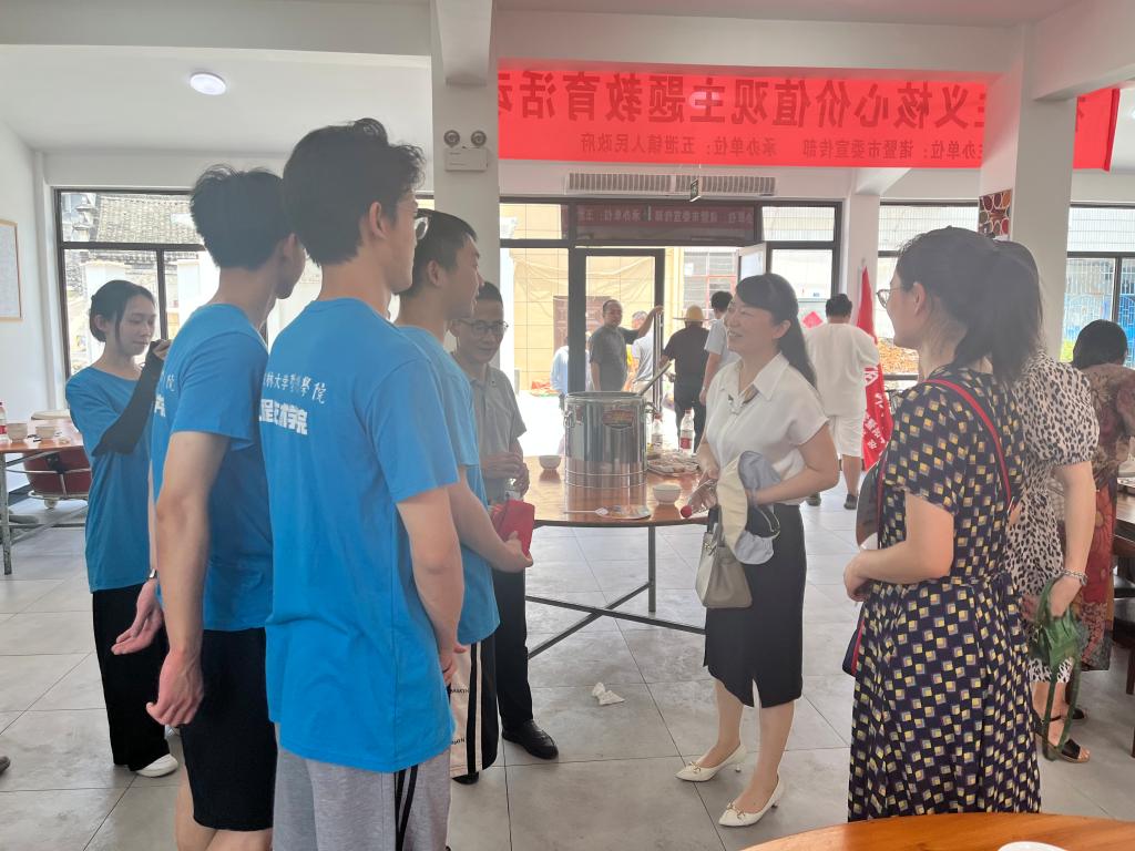 走访期间,洪昀一行参加了西皇村爱心食堂开业典礼。五泄镇党委副书记陈官珂,西皇村各村干部,工程技术学院社会实践团师生参加仪式。仪式上,洪昀和陈官珂共同为爱心食堂揭牌。活动现场,工程技术学院与五泄镇人民政府达成志愿者联盟,现场完成了授旗仪式。