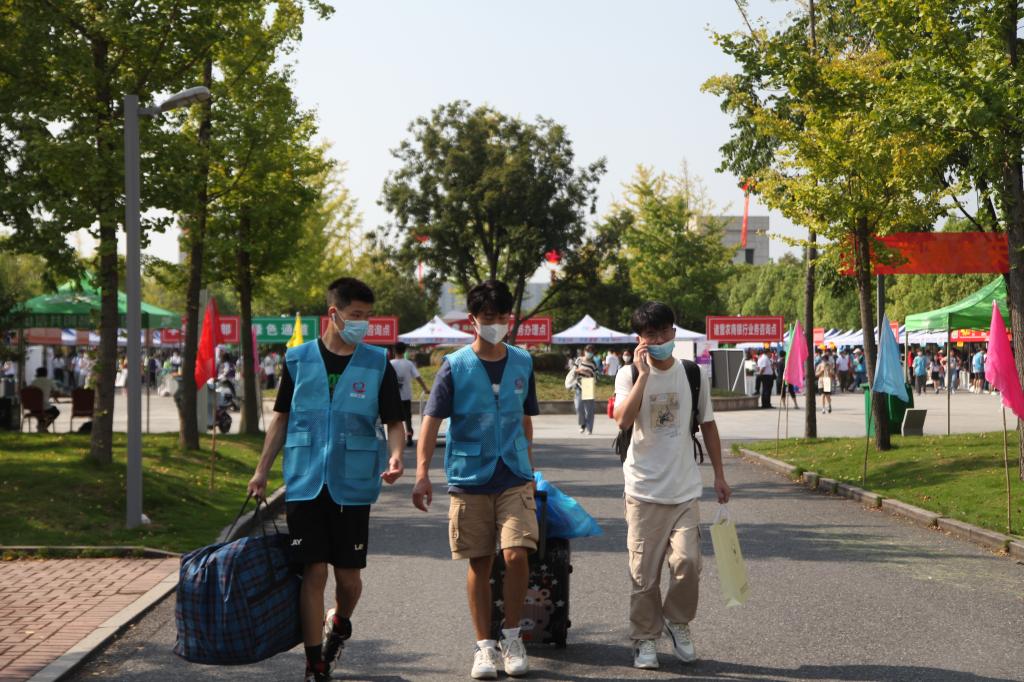 校园内彩旗飘飘,各色标语彰显出学院对新生的热情。满腔热忱的志愿者们,整装待发,早早地在各报到点就位。他们顶着炎炎烈日,一部分引导新生完成报到、安置行李,热情地向新生介绍校园环境与学习经验。一部分往返于校园门口到宿舍门口,帮助新生装载、运送行李。