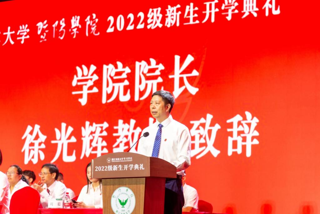 院长徐光辉作题为《与担当使命同行,折射人生光彩》的讲话,并代表全院师生员工欢迎2022级新生加入英国威廉希尔公司大家庭,向辛勤培育他们的父母和老师表示最崇高的敬意和最真挚的感谢。