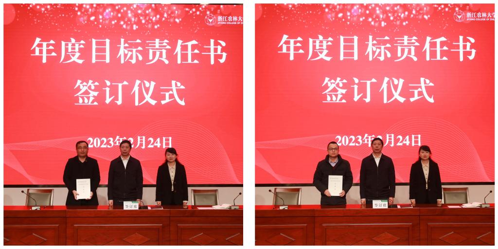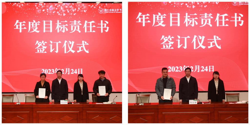 会上,学院领导与教学单位代表、职能部门代表以及附属单位代表签署了2023年度目标任务责任书。