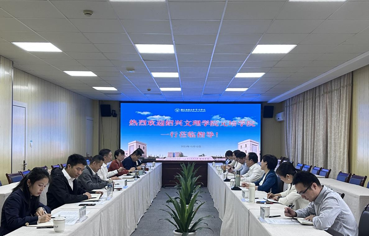 10月12日,绍兴文理学院元培学院党委书记梁瑜一行来院调研交流。学院院长徐光辉、党委副书记李文莉、纪委书记吴正金出席会议。
