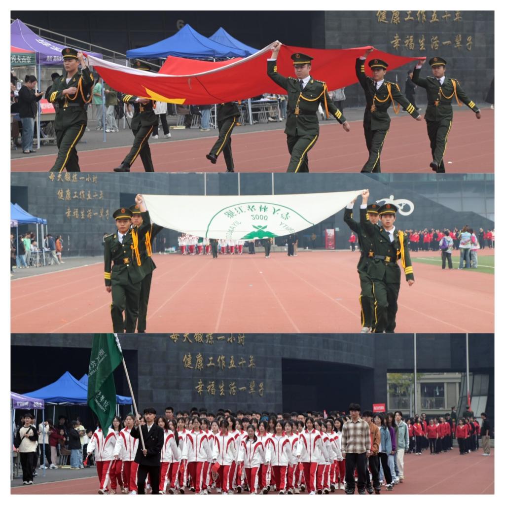 开幕式上,激情昂扬的运动员进行曲响起,国旗、院旗、会徽方阵,仪仗队依次进入,随后教职工方阵和各二级学院运动员方阵身着靓丽的服装,迈着整齐的步伐,喊着响亮的口号入场。他们以饱满的热情点燃了运动之火,以高昂的姿态展现了暨阳师生的风采。