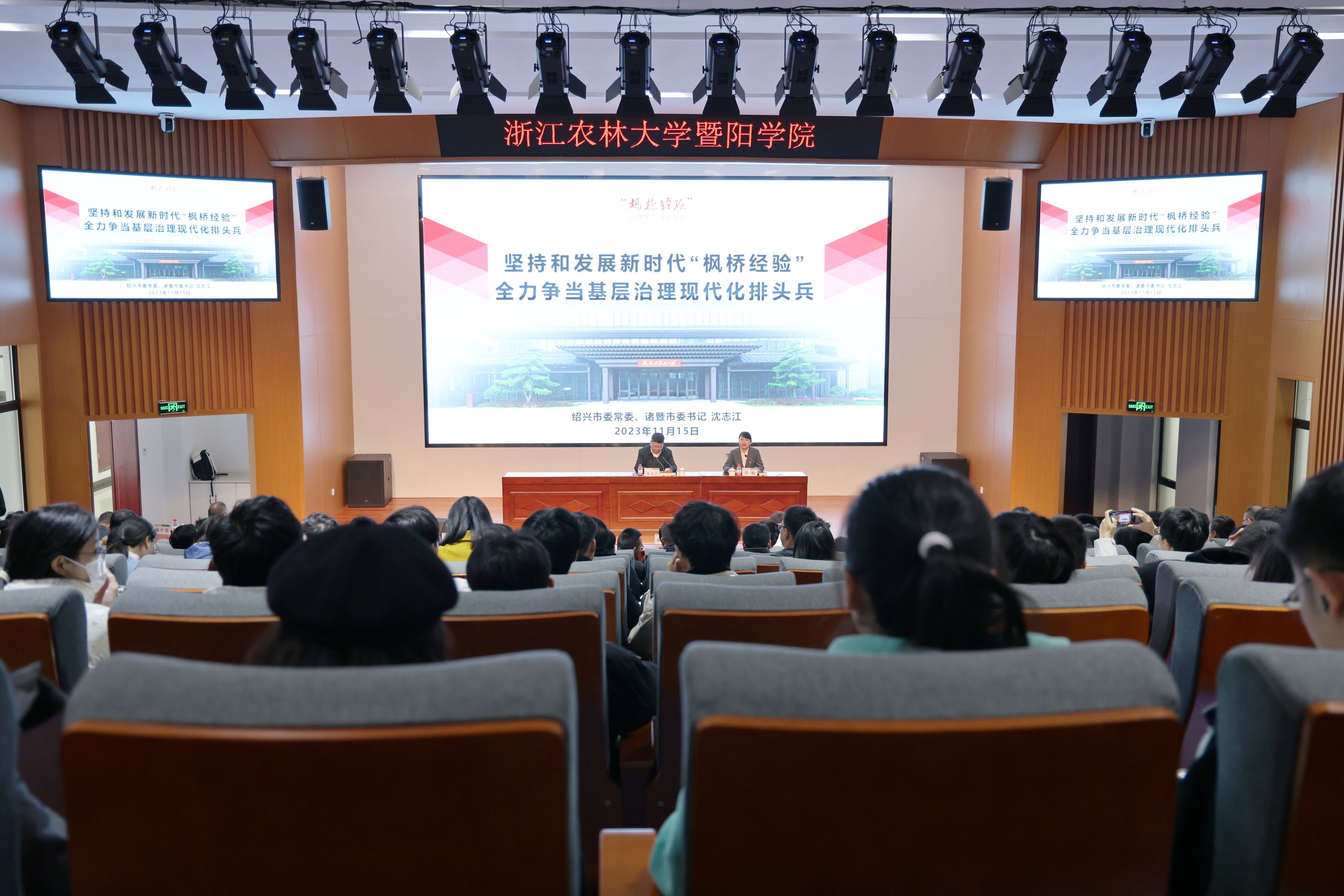 洪昀表示,在诸暨市委市政府的支持下,学院始终坚持与地方发展紧密结合,重视“枫桥经验”的研究、传播与实践,积极地推进新时代“枫桥经验”在校园传承发展。在办学过程中,学院师生自主研发了“数字治理智慧平台”,为社区在推进基层社会治理数智化方面发挥高校力量。学院不断完善师生网格化管理模式,坚持群众路线,举办“暨阳倾听”与师生面对面交流等活动,不断提升学院的治理水平和能力。她强调,今后,学院将牢牢把握“稳中求进”的总基调,凝心聚力、锐意进取,不断加强党的领导,坚持社会主义办学方向,持续提升人才培养质量,推动高水平应用型学院建设。要有效深化校地合作,提升服务区域经济社会发展能力,积极打造新时代高校版“枫桥经验”,助力诸暨打造新时代共同富裕新高地。