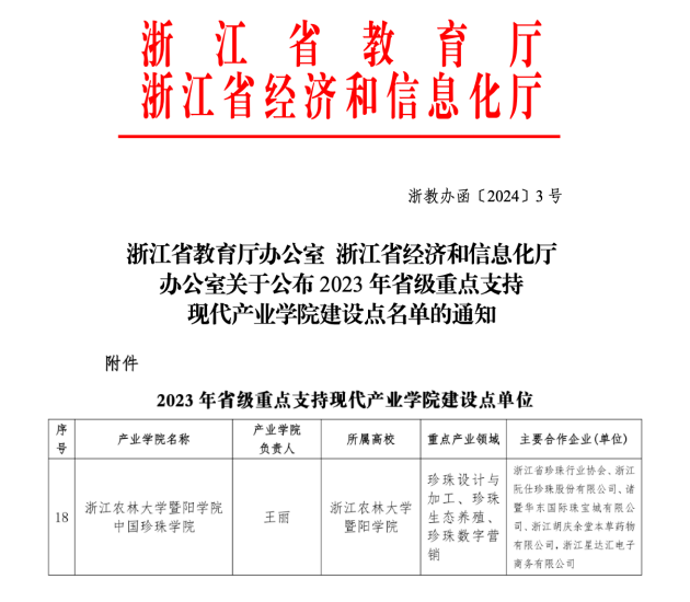 【重大喜讯】中国珍珠学院获批省级重点支持现代产业学院建设点