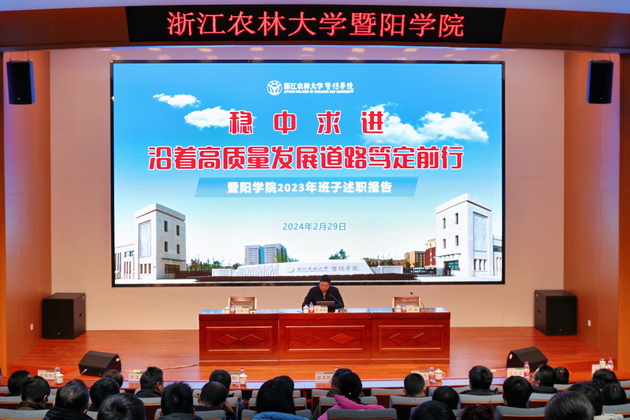人勤春来早,功到秋华实。2月29日,学院班子述职会暨2023-2024学年第二学期中层干部扩大会议在智能报告厅召开,这也是学院召开的“新年第一会”。