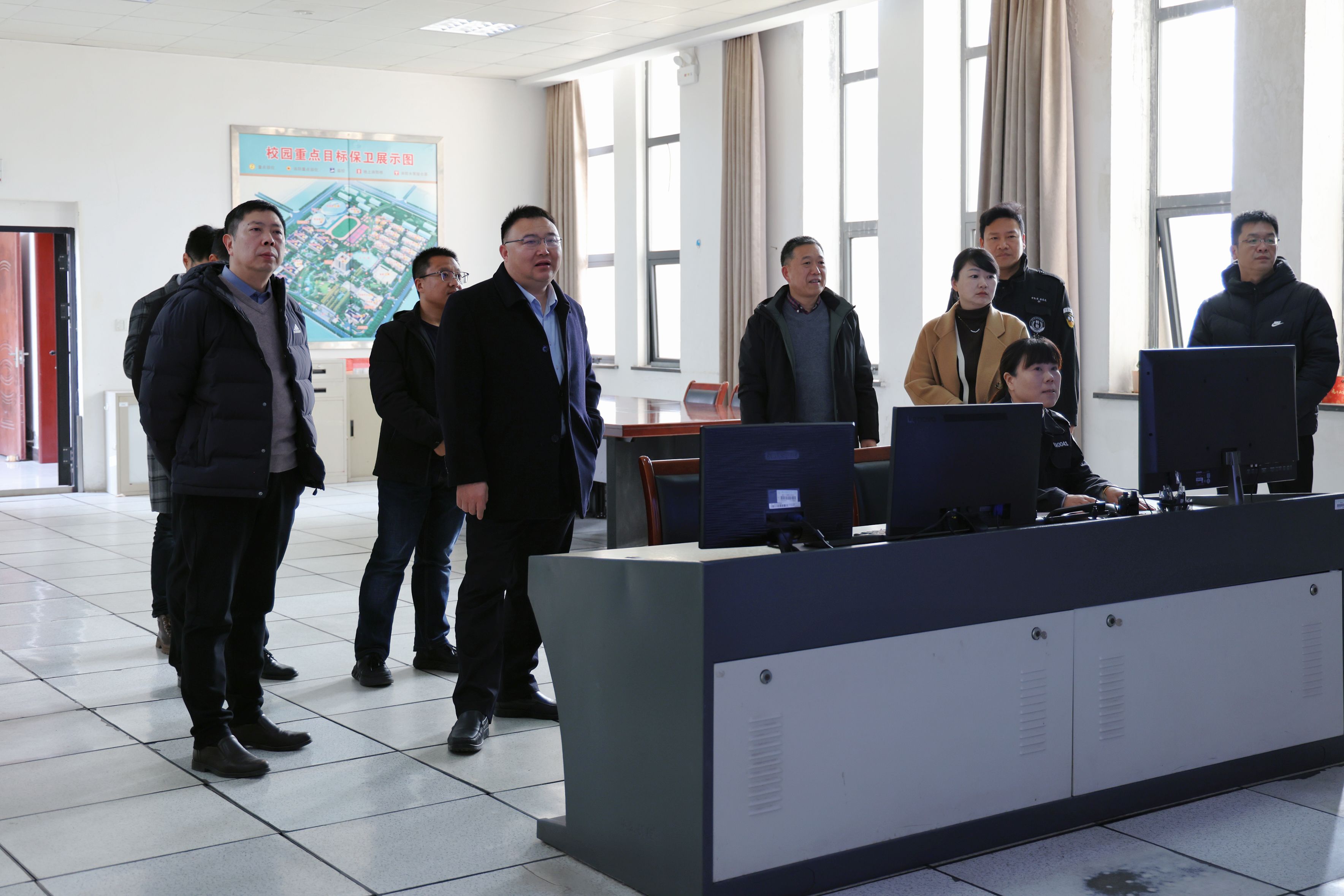 朱斌一行深入走访了学院心理健康教育中心、校园警务室、消控室等地,实地检查学生心理健康教育、校园安全设施设备运行与保障等具体工作。