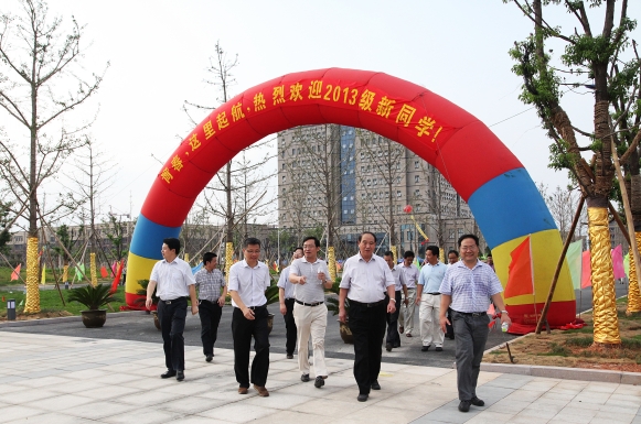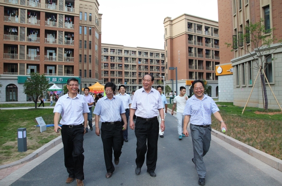 沿着校园大道,周国富饶有兴致地参观了校园。站在图书馆顶楼俯视校园全貌,一座厚重大气、错落有致、布局合理、功能齐全的现代化大学尽收眼底;走在中心湖畔、体育运动区、师生生活区、创业街,优美的环境、一流的设施、便捷的服务,为大学生的成长成才创造了良好的条件……周国富一路看,一路问,仔细了解师生在新校园的学习和生活情况。