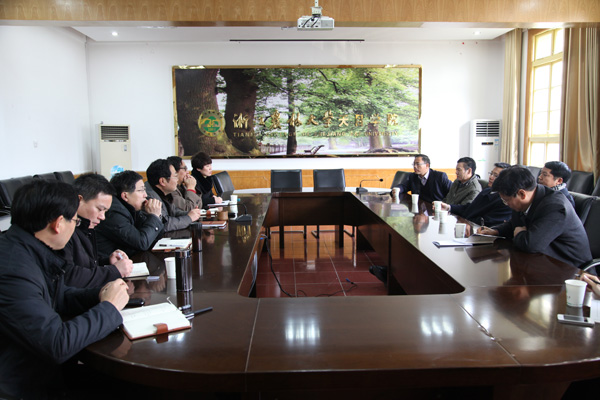 石道金院长代表全院师生对校领导的关怀表示衷心的感谢,汇报了学院迁址诸暨办学工作安排的整体思路。