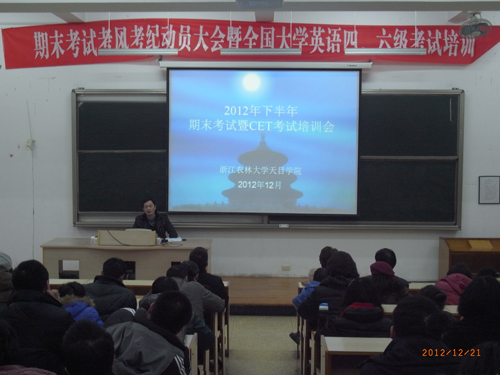 会上,教务管理部主任负责人就全国大学英语四、六级考试操作规程调整作了详细的说明,并对期末考试的有关事项作了布置,要求各系加强师生考前教育和培训,严肃考风考纪,切实负起责任,确保全国大学英语四、六级和期末考试工作顺利进行。