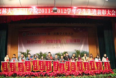 会上,哀建国副书记宣读了关于表彰2011-2012学年学生先进集体和先进个人决定的文件,学院领导为先进集体和个人颁奖。