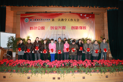 大会为获得学院第三届教学成果奖的教师进行了颁奖,为青年教师进修学校第一期结业学员颁发了结业证书。