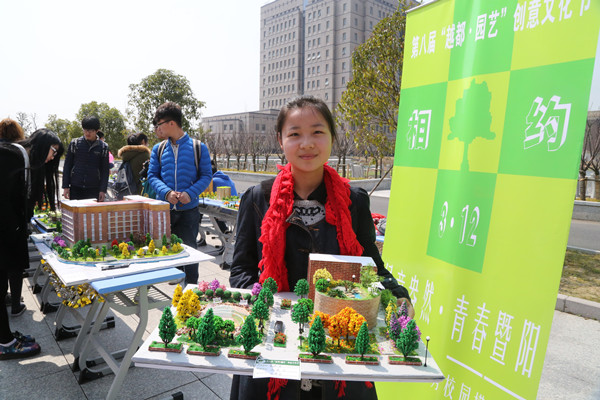 在第37个植树节来临之际,学院园林艺术系的学生们自发在校园广场上举办 “绿意盎然、青春暨阳”生态校园模型作品展。同学们利用平时课余时间制作出他们心目中的生态校园模型,倡导人们热爱植物,保护环境。