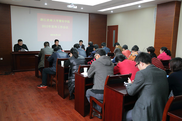 院办、新闻宣传中心负责人在会上介绍了2015年学院宣传工作要点。2015年,学院宣传工作将重点做好六个方面的工作:进一步加强意识形态工作,努力建设平安校园;加强教育教学改革和师生先进典型的宣传,弘扬正能量;进一步加强招生宣传力度,不断提高生源质量;进一步加强外宣工作,提升学院的社会知名度和影响力;努力构建大宣传工作格局,进一步加强宣传平台建;进一步加强宣传队伍建设,提升宣传能力和水平。