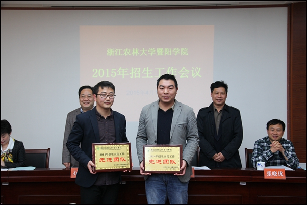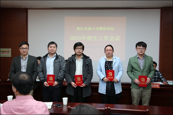 会议还表彰了学院2014年招生宣传工作先进团队和个人,第十片区和校内电话咨询团队获得2014年招生宣传工作先进团体,马忠兴、季永亮、杨波、吴海涵、赵锋、周潇烨、徐春霞等7位老师获得2014年招生宣传工作先进个人。先进团队和个人代表分别作了经验交流。