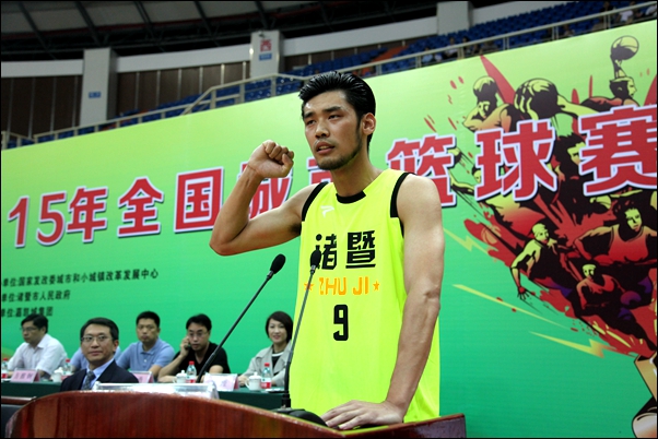 本网讯 5月23日下午,2015年全国城市篮球赛开幕式在威廉希尔官网体育馆隆重开幕。国家发改委城市和小城镇改革发展中心主任李铁宣布开幕,省篮协主席楼国华为揭幕战开球,诸暨市市长徐良平在开幕式上致辞。诸暨市领导徐仙苗、俞越、王培光,学院领导石道金、寿韬参加开幕式。