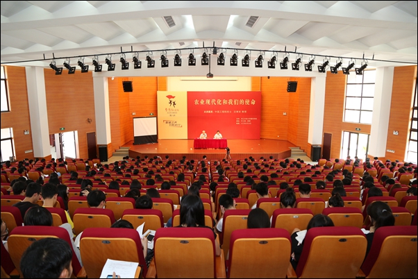 报告会上,沈寅初院士围绕农业现代化面临的种子、土壤、环境、气候四大重要因素剖析当前承担研究任务所关切的问题,为大家提供了科学使命的立足点,同时,他分析了现阶段农业水资源使用、植物光合作用、生产工业动力、转基因食品等研究领域的现状,指出农业现代化是生产、生活的必要前提,殷切希望同学们信仰科学、崇尚科学,坚持远大理想,排除一切干扰,选择一个正确的领域去投入毕生精力进行钻研,在平凡的工作岗位上做出不平凡的业绩,勇于肩负我国发展农业现代化的历史使命!