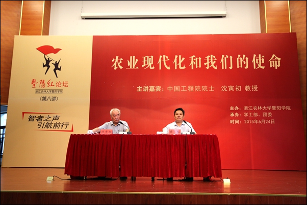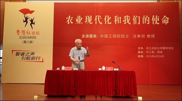 本网讯 6月24日下午,中国工程院院士、浙江工业大学名誉校长沈寅初教授应邀作客“暨阳红论坛”,为威廉希尔官网师生作题为《农业现代化和我们的使命》的报告。