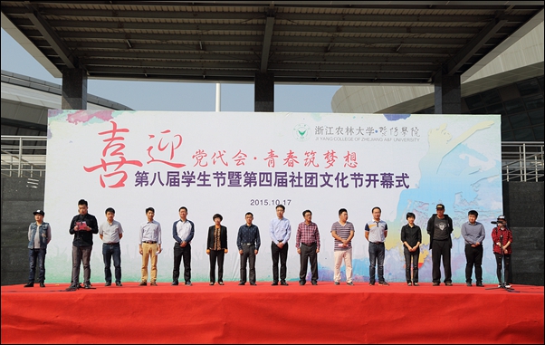 开幕式上,蔡永华为学生社团校内、外指导老师颁发聘书并宣布第八届学生节暨第四届社团文化节开幕。学工部、团委负责人代表活动主办部门致辞;大学生非凡广播剧社指导老师李巧苗代表校内指导老师发言;大学生棋艺社指导老师、诸暨市棋类协会秘书长章海涌代表校外指导老师发言;大学生辩论协会会长潘天丰同学代表学生社团作表态发言。