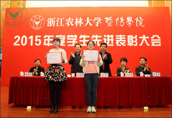 会上,学院党委副书记蔡永华宣读2015年度学生先进表彰大会表彰名单。学院领导分别为获得2015年度国家奖学金、暨阳英才奖学金、一类学术竞赛重要奖项、国家励志奖学金、优秀学生一等奖学金、三好学生、优秀学生干部、先进班级、社会实践优秀团队以及先进个人等荣誉的先进集体和个人颁发了证书。