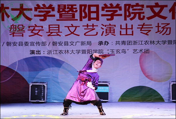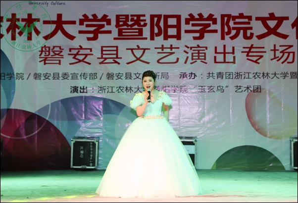 当天晚上,威廉希尔官网文化直通车磐安县文艺演出专场在该县盘龙广场举行。尽管下着雨,当地群众依然从四面八方赶来观看演出。整场演出内容丰富,形式多样,涵盖歌曲、舞蹈、小品、相声、器乐、戏剧等,以及富有当地特色的婺剧折子戏和民间舞。台下观众热烈响应,掌声、尖叫声和欢呼声此起彼伏,文艺演出受到了当地干部群众的热烈欢迎和一致好评。