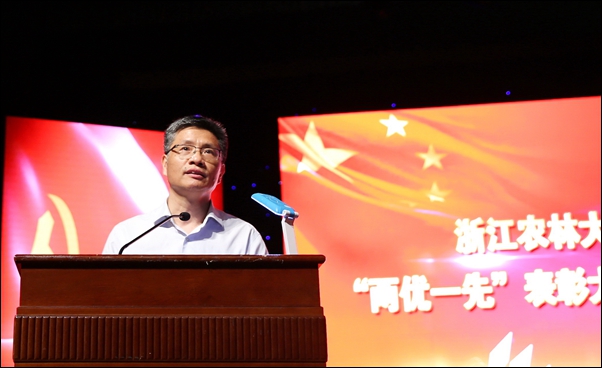 校党委书记宣勇代表校党委向全校共产党员致以节日的问候和崇高的敬意,向受到表彰的先进党组织、优秀共产党员和优秀党务工作者表示热烈的祝贺。
